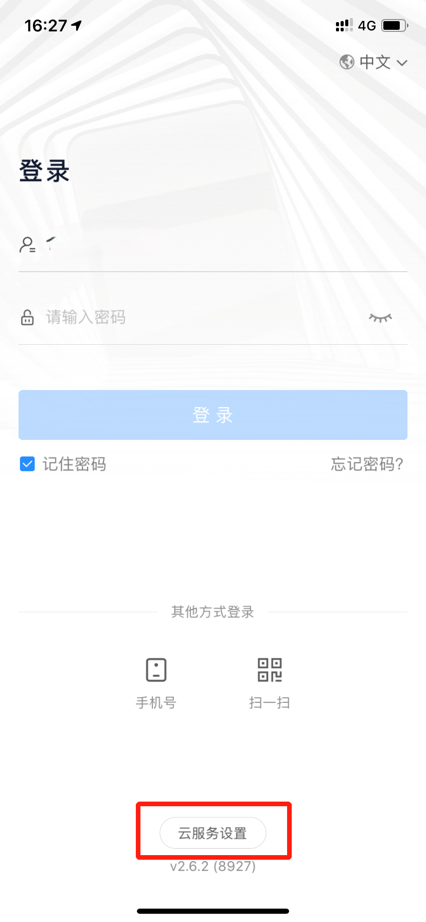 第一步:手机端登录界面底部点击【云服务设置】