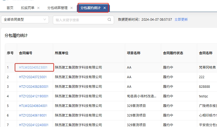 92、分包结算管理,分包合同有四个,结算时只弹出两个¶