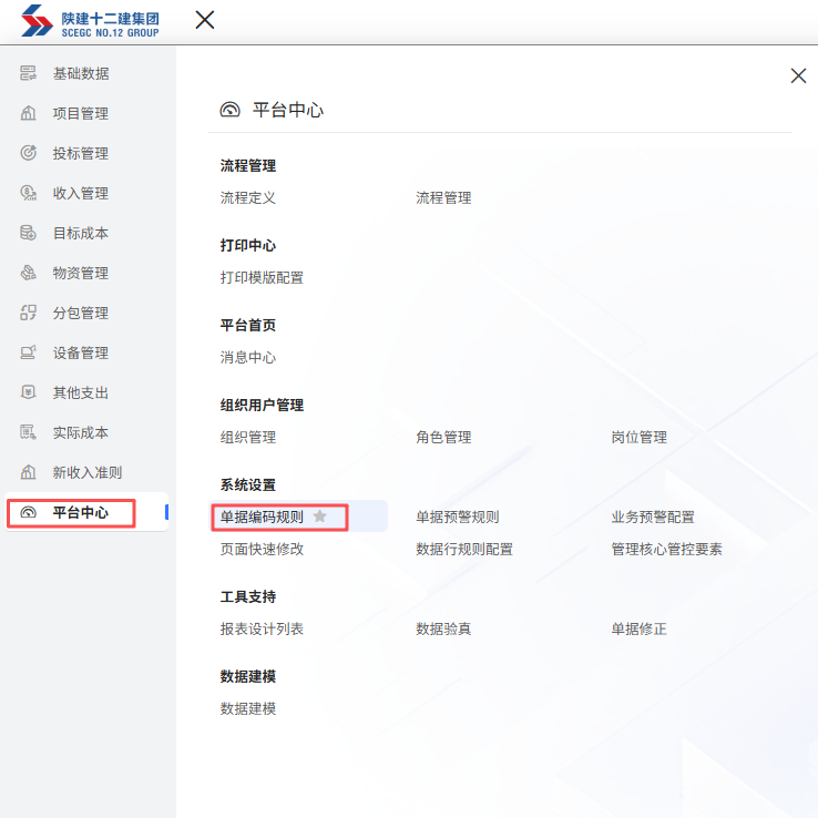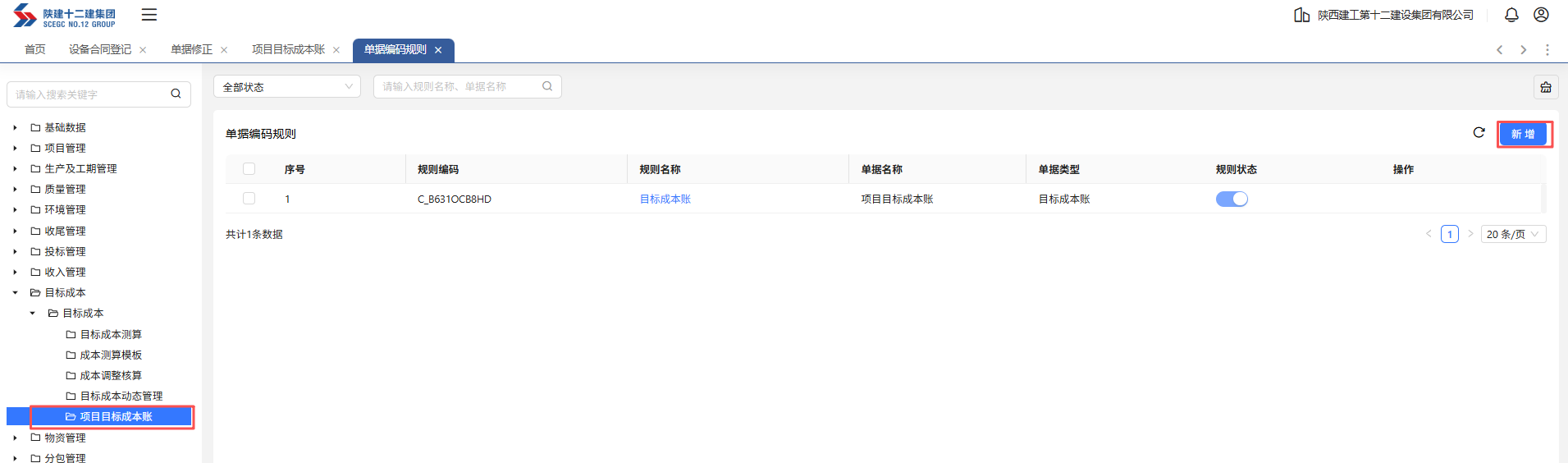 ④设置编码规则之后点击项目成本账单据之后,重新填报提交