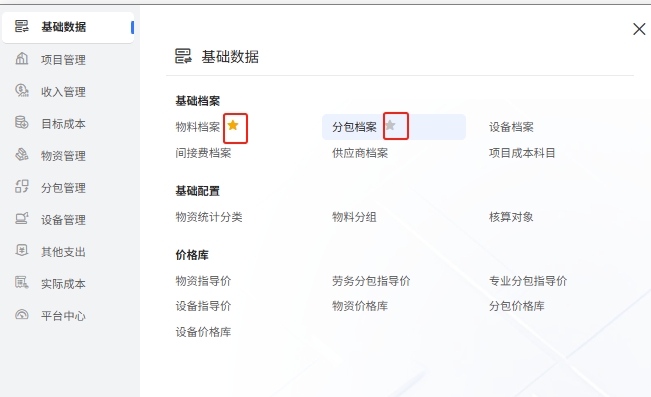 标记用的,科目类型为材料费、劳务分包费、专业分包费、机械设备费的科目仅展示一级科目,其他全部展开