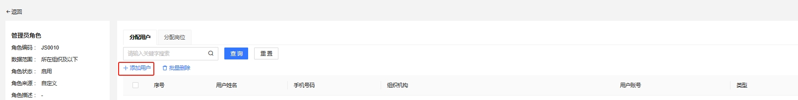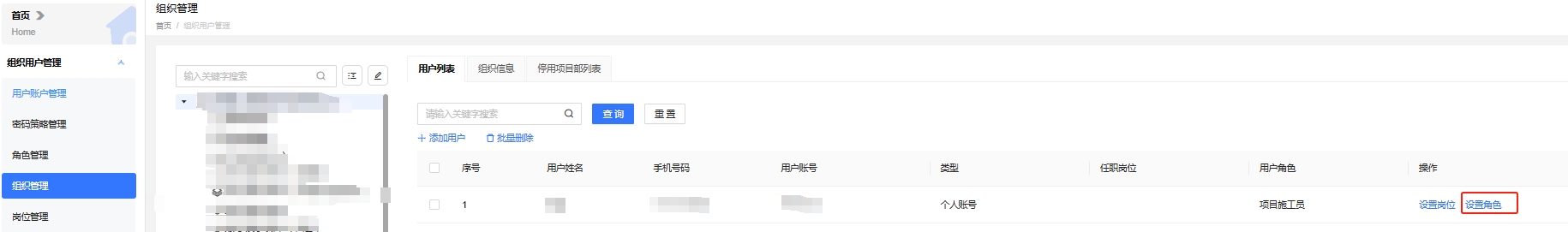 ①人员需要添加到集团层级,集团层级的菜单和项目级的菜单不一致