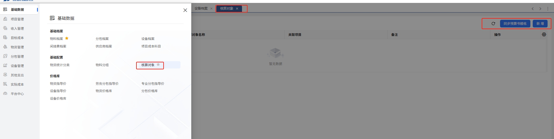 在基础数据--核算对象菜单下,可根据项目管理精细度进行核算对象的拆解