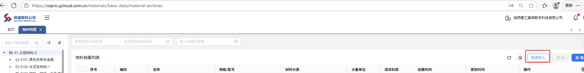 在导出导入之前先在物料档案中将需要填报的材料名称添加为常用,再下载对应的导入模板进行填报,这样下载的模板中将带有对应物料的ID。