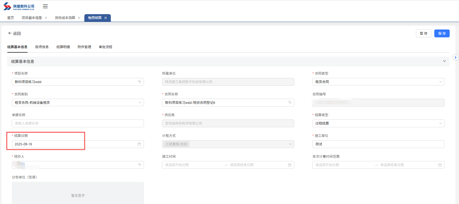 ②查看结算时间,重新修改结算时间,在提交对应的结算单据