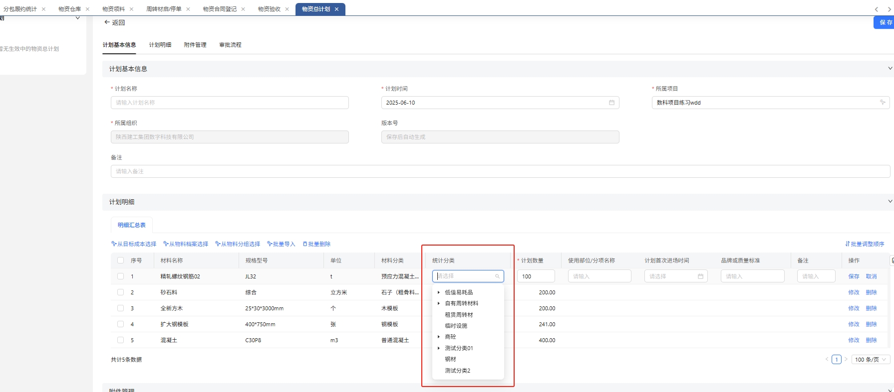 物资总计划可以不带材料ID导入,当前建议对应材料ID批量导入,这样方便后续材料规格能对应上