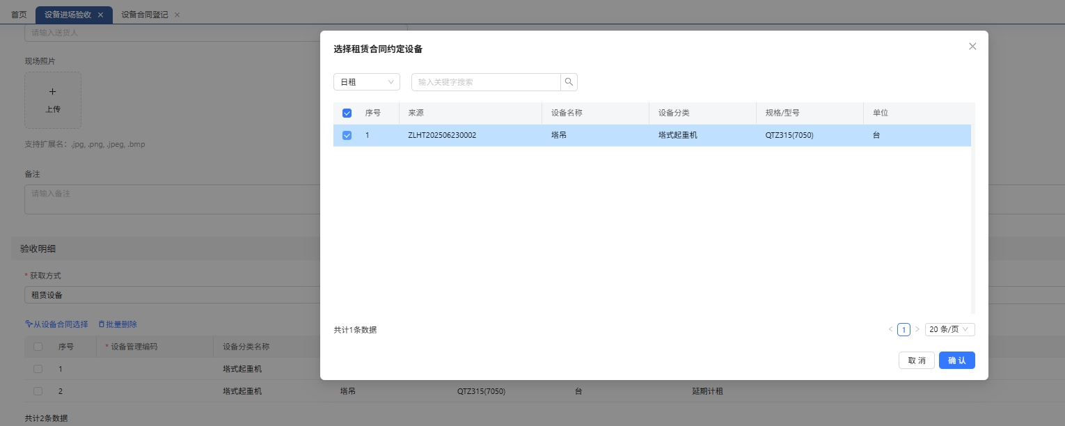 在录入设备合同时,其他费用里面把进场费记录两遍
