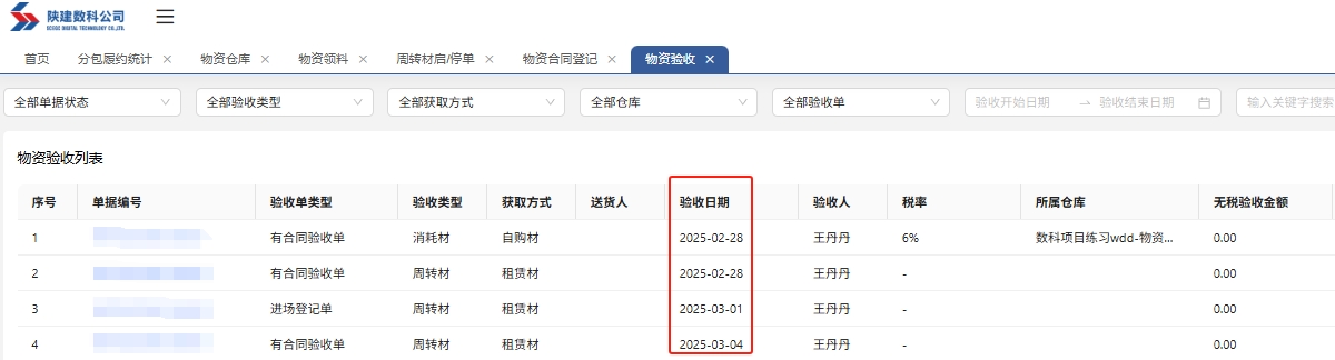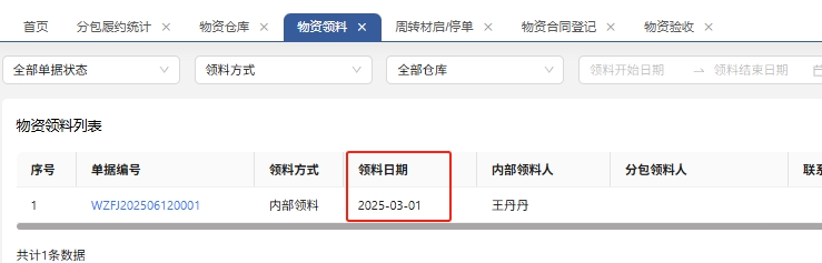 检查验收日期和领料日期,验收日期要在领料日期之前。