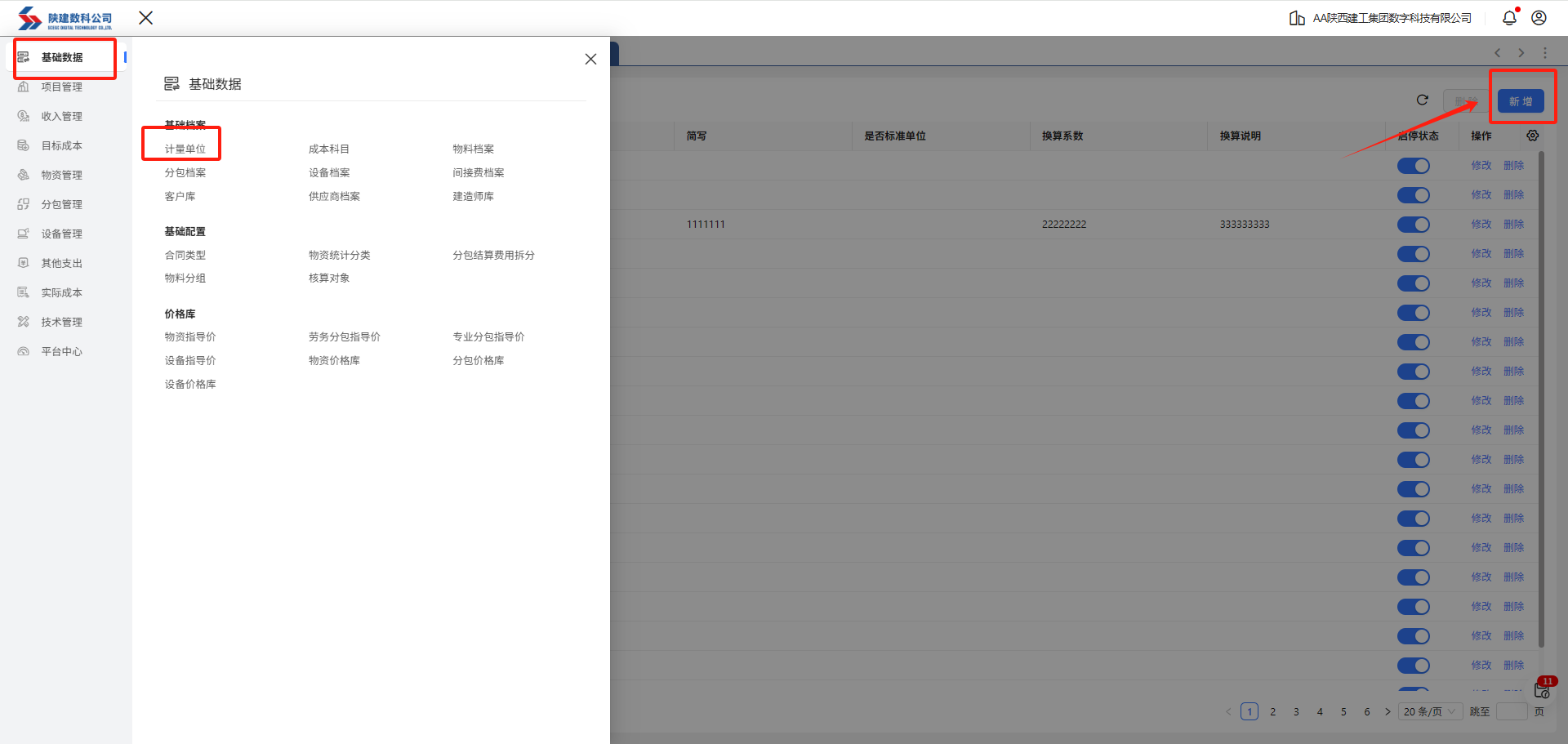 需要联系企业管理员--切换到子集团层级--进入基础数据页面--找到对应的物料档案/设备档案/分包档案进行添加。