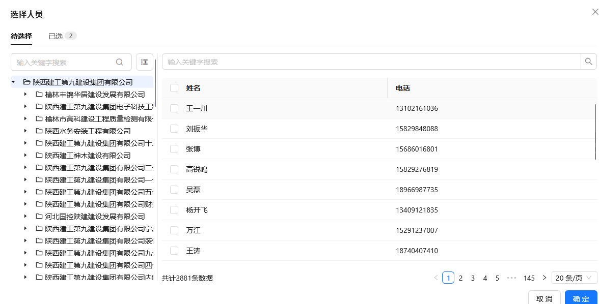 - 考试人:选择了"陕西建工第九建设集团有限公司"下所有的人,表示公司下所有人可以参加考试