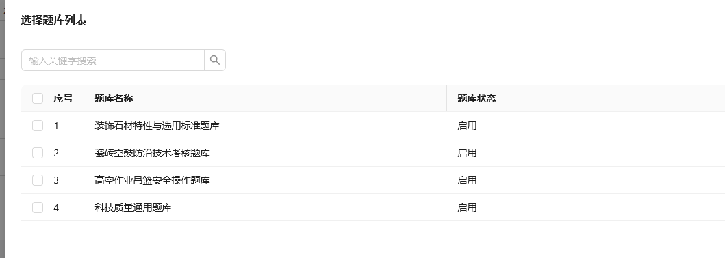 - 所属部门:选择了:"科技质量部",表示这个只允许科技质量部看到这个考试