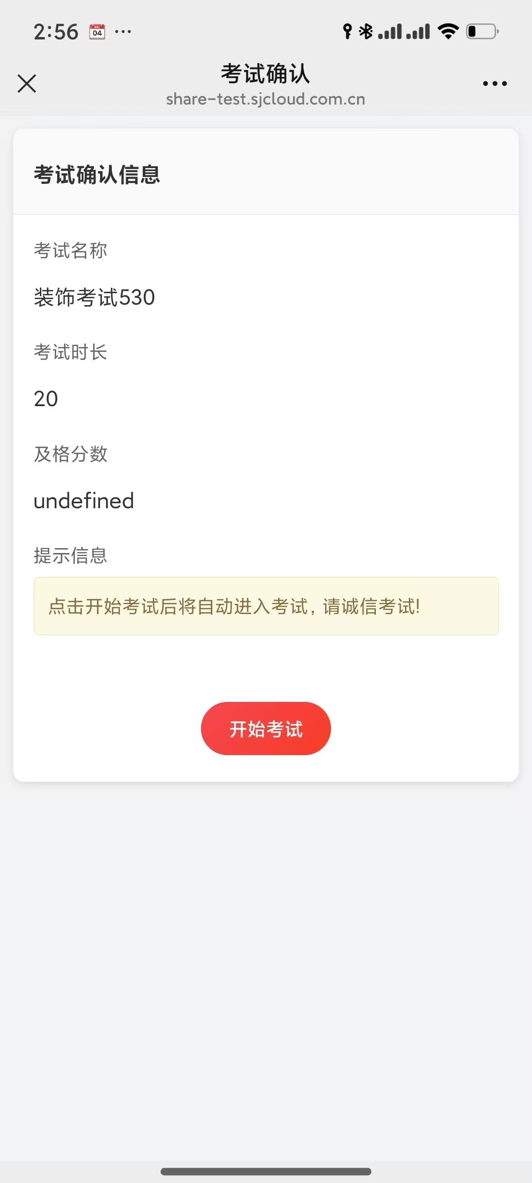 填写姓名以及手机号,点击"提交"。接着进入考试确认页面: