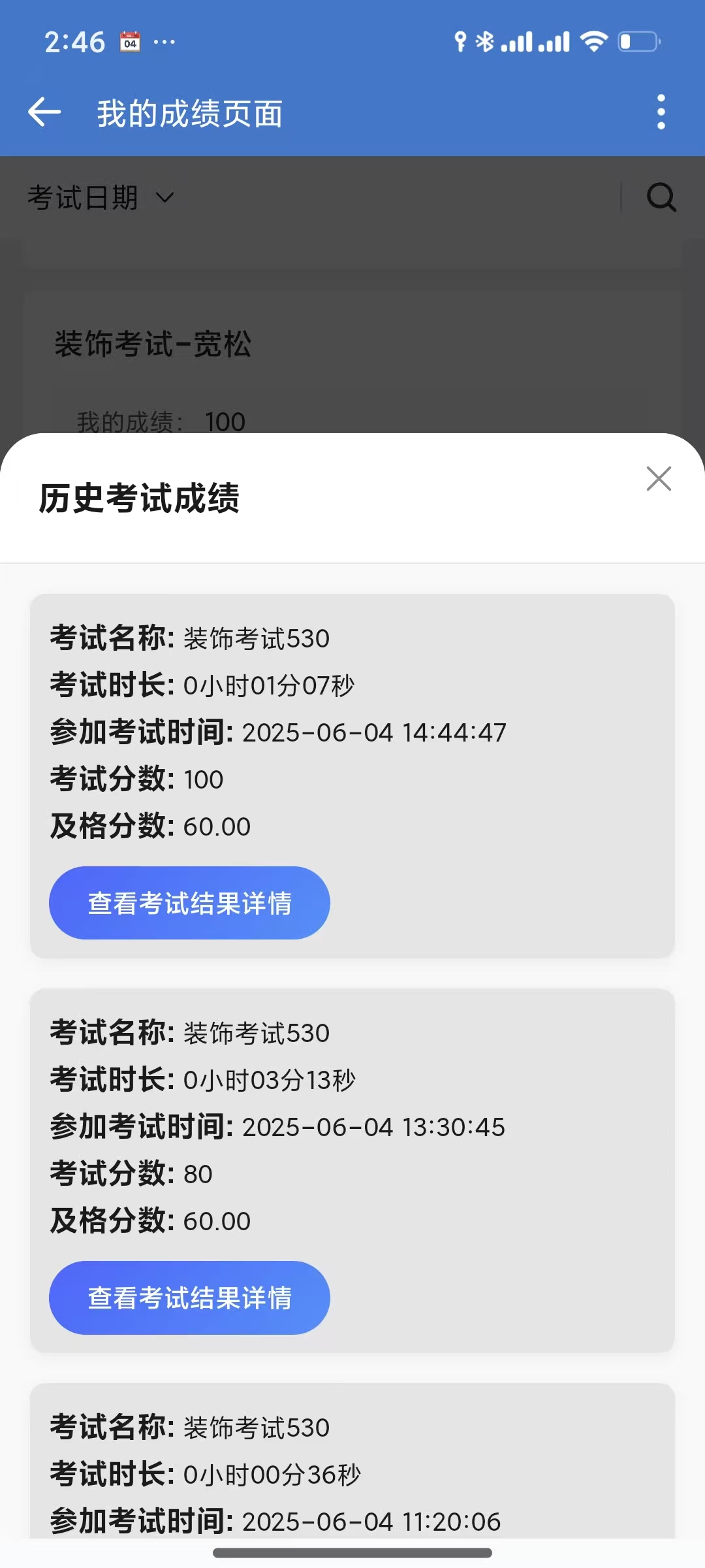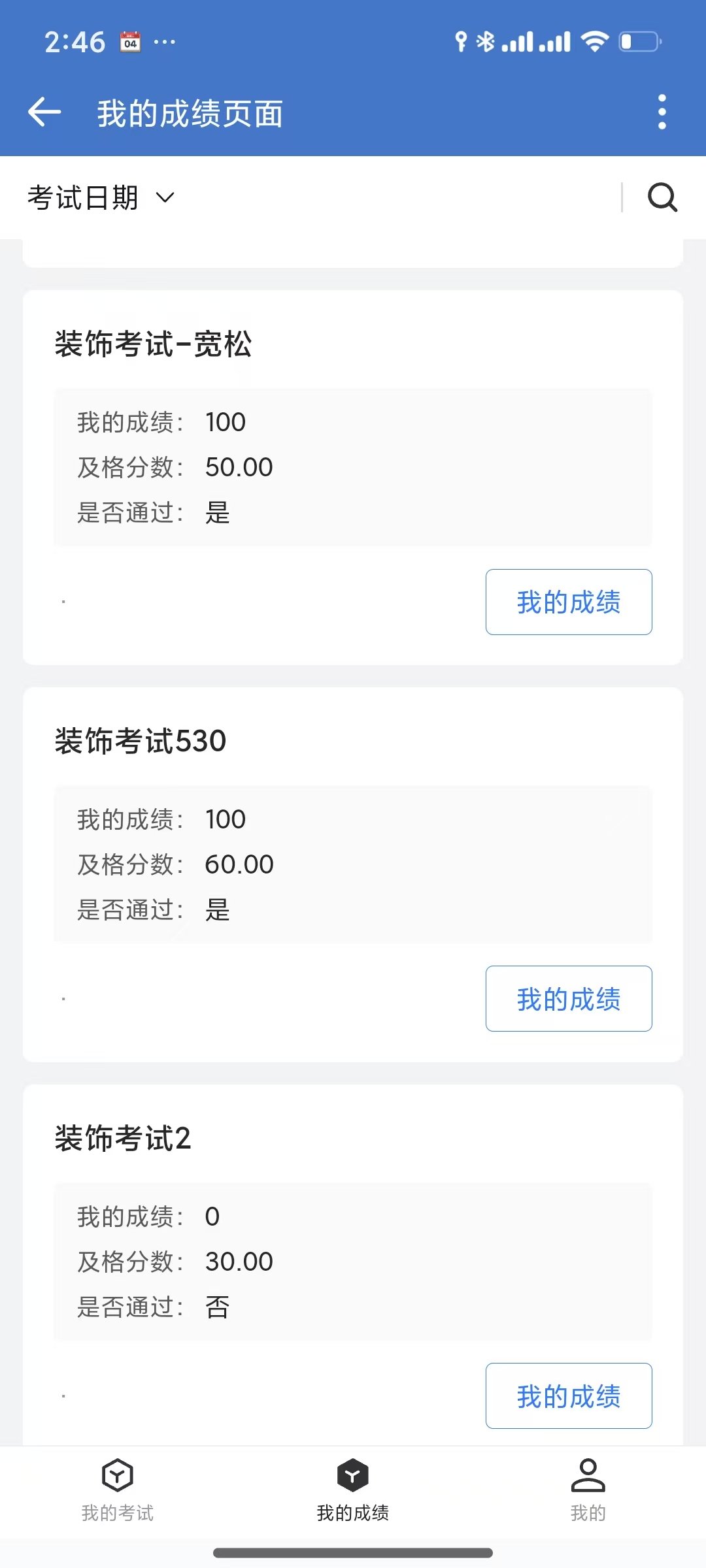 选择对应的考试,点击 "我的成绩"