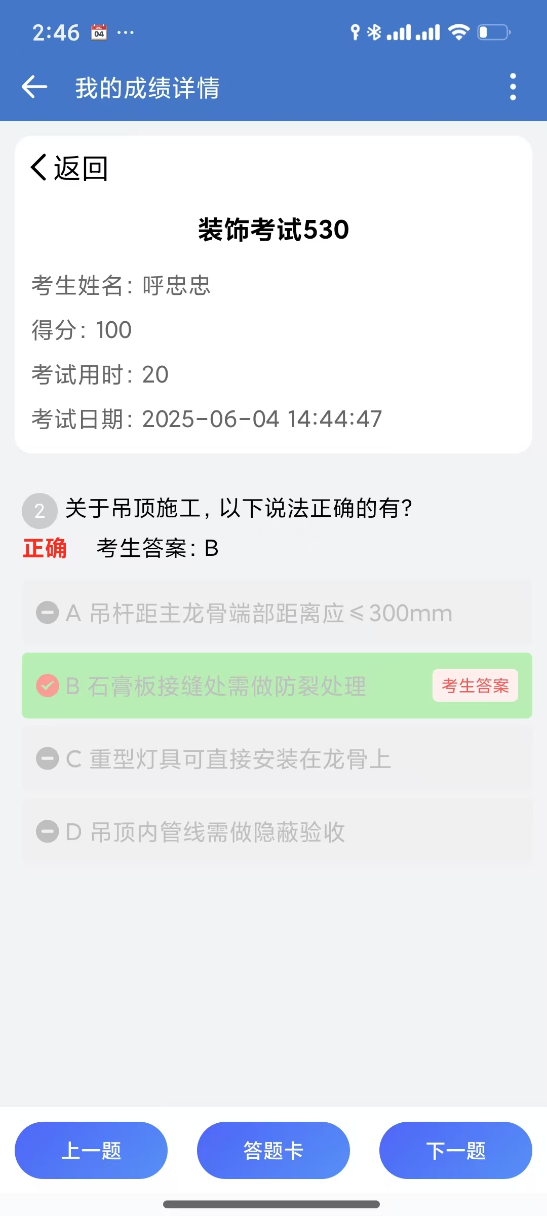 可以查看当前考试结果以及答案信息。
