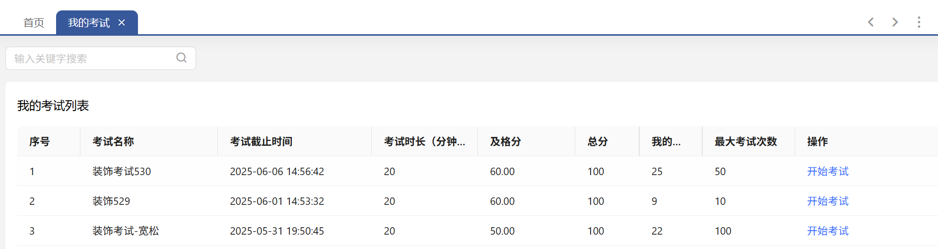 | 我的考试次数 | 用户已参加该考试的次数 |