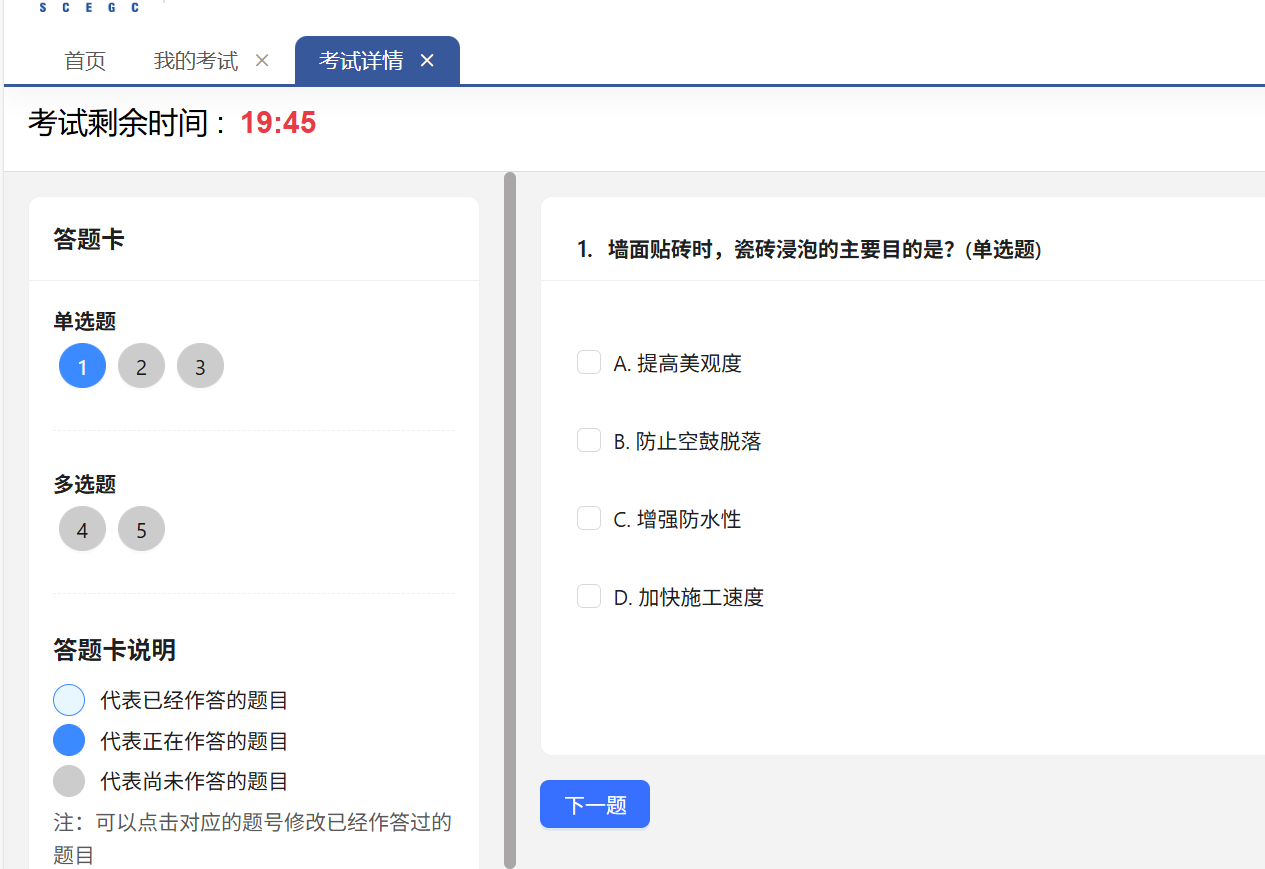 答完后,可以看答题卡的颜色避免漏掉。点击右上角提交按钮完成考试