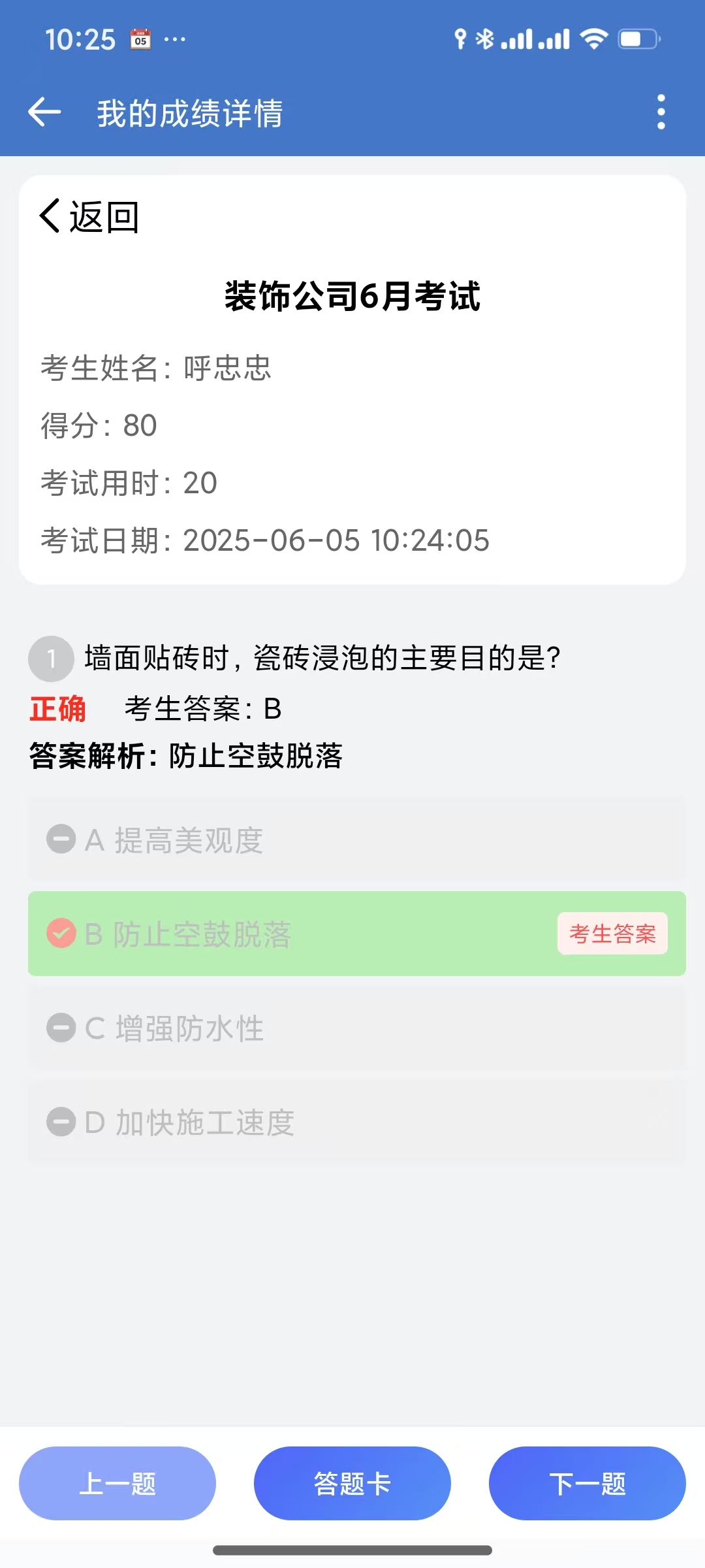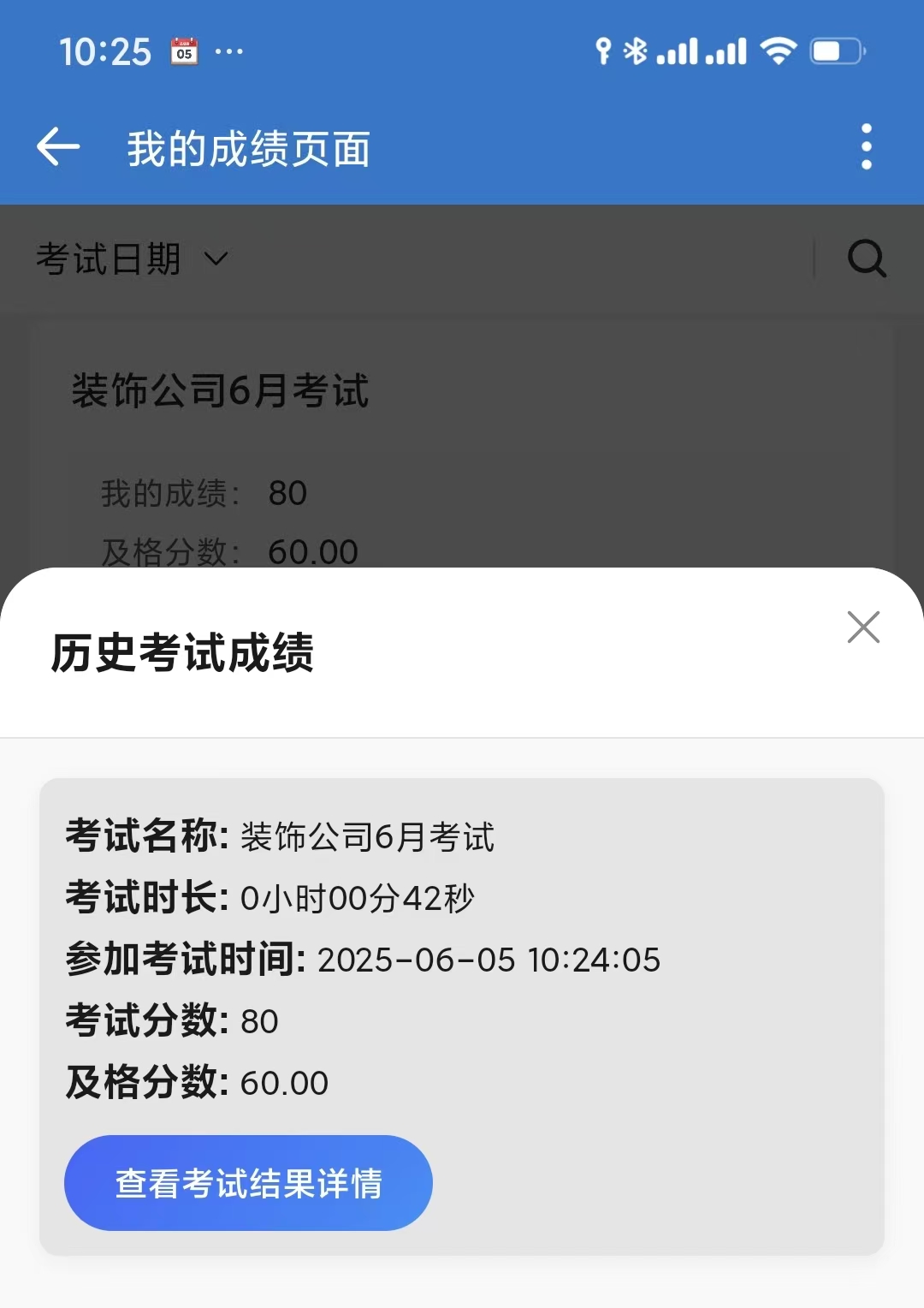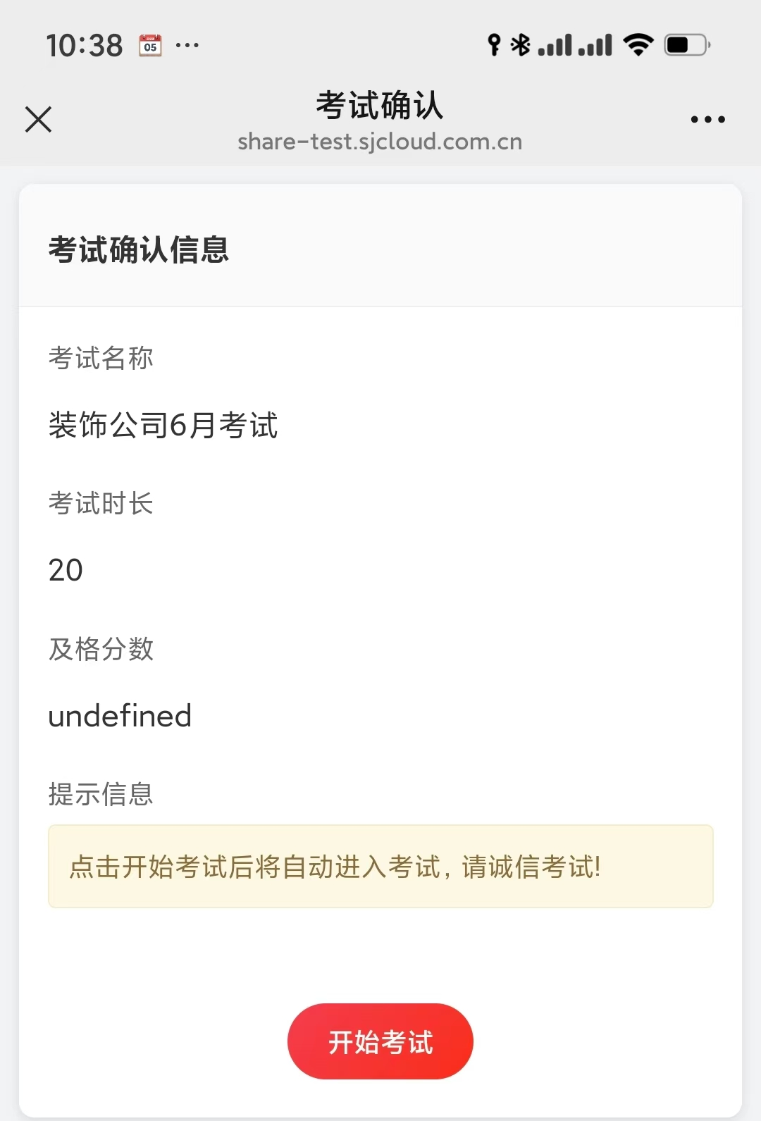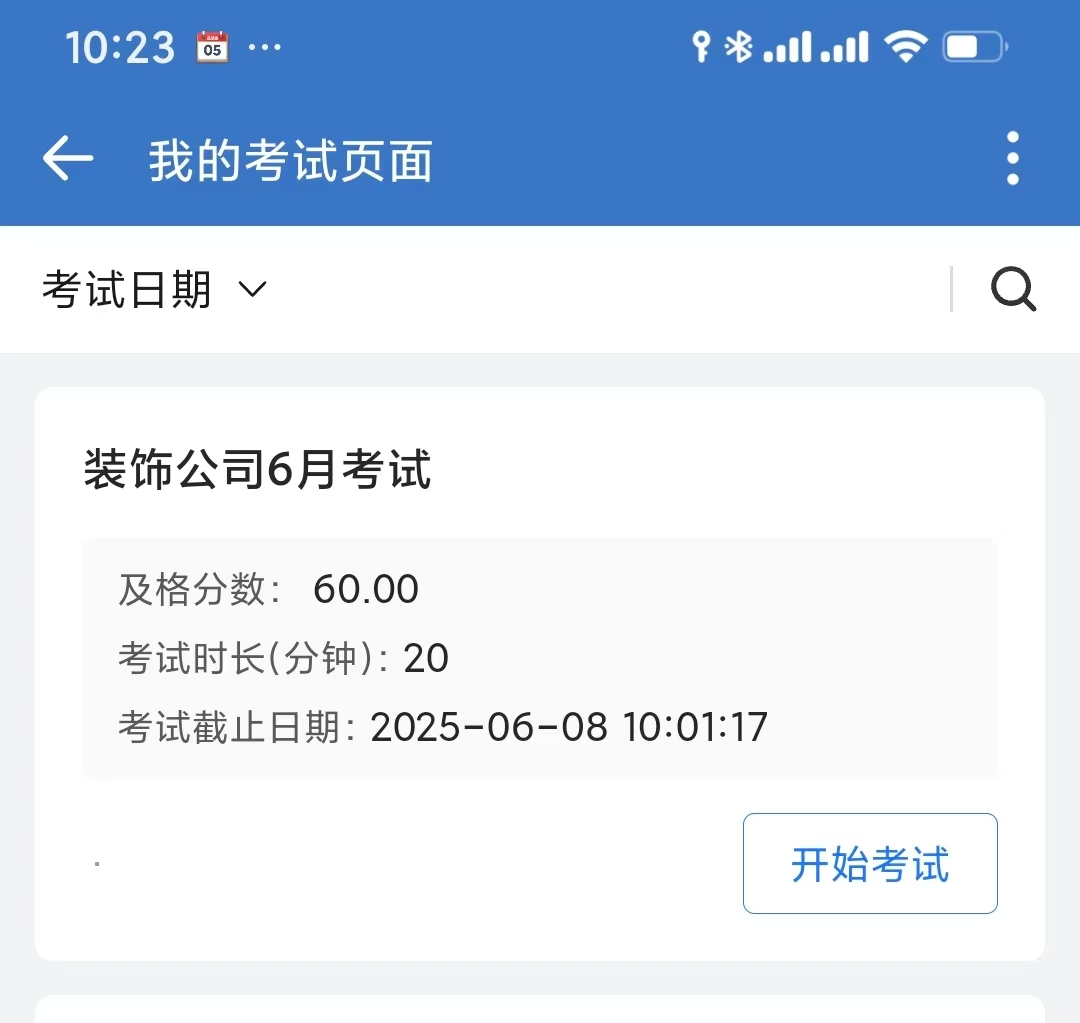 - 选择本次的考试"装饰公司6月考试"