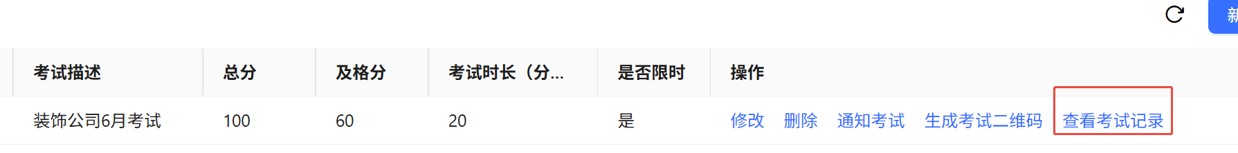 - 在"考试管理页面",点击"查看考试记录"