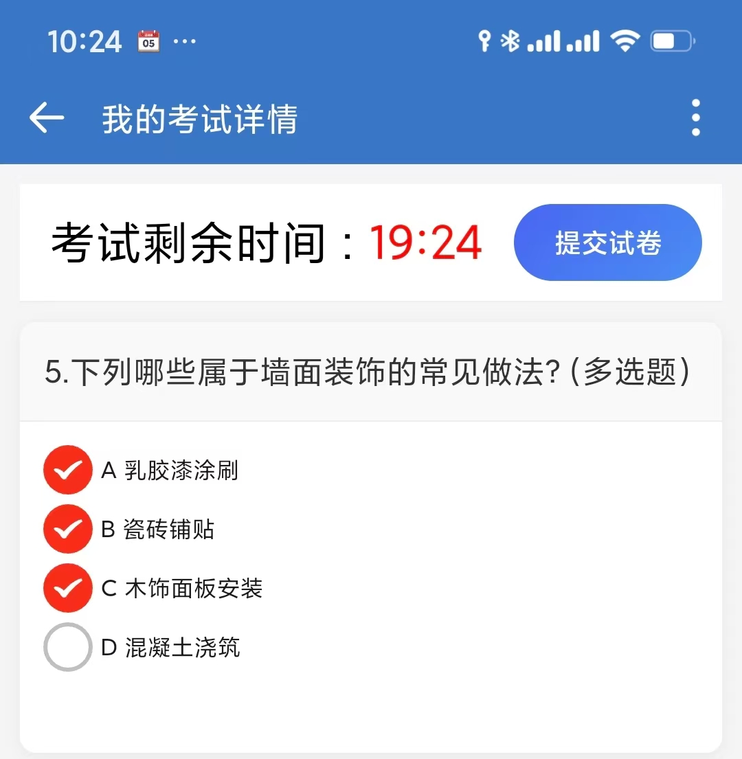 这里说一下在手机上的考试,pc上类似