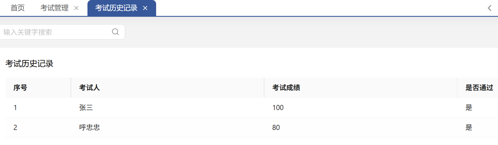 - 如图,可以看到本次考试参加的人以及考试结果