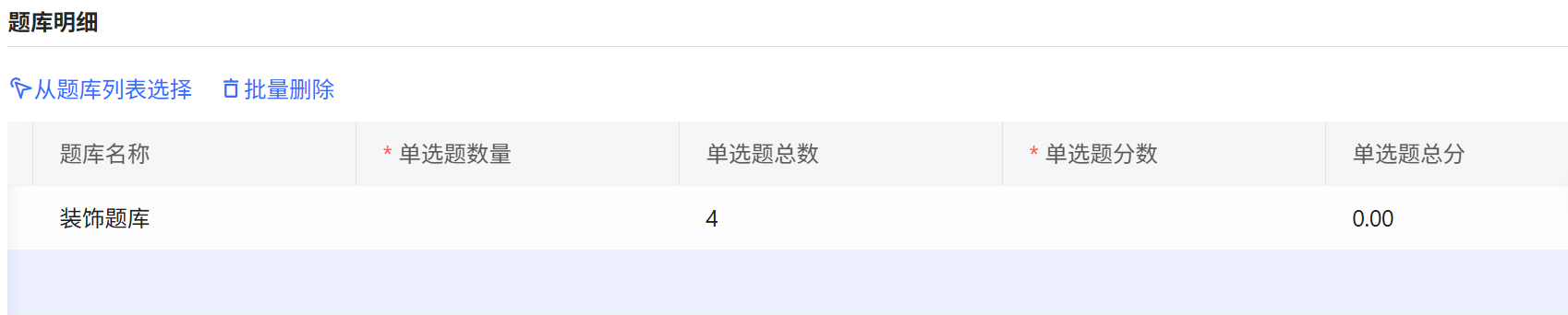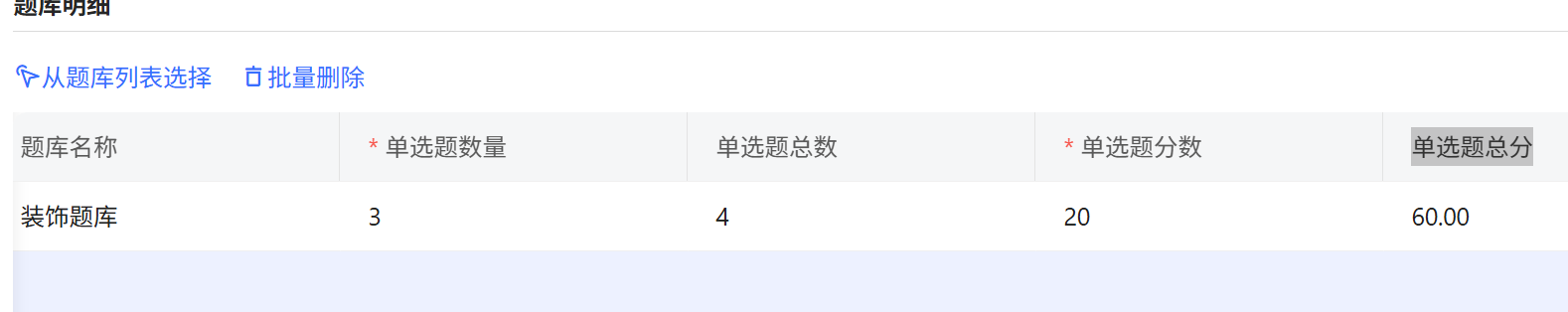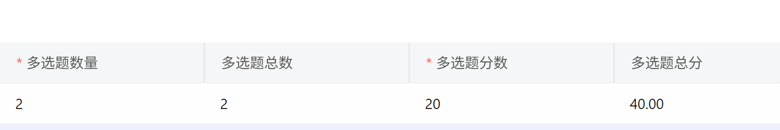 - 单选题总分: 单选题数量 * 单选题分数: 输入完单选,如图: