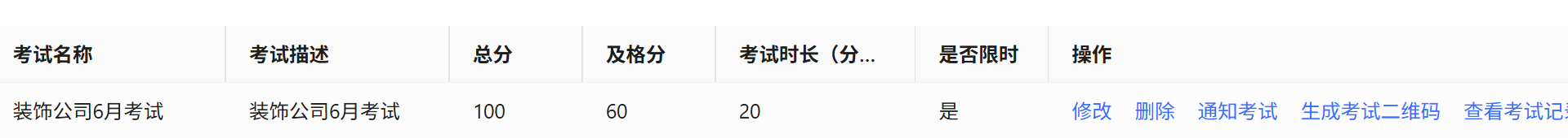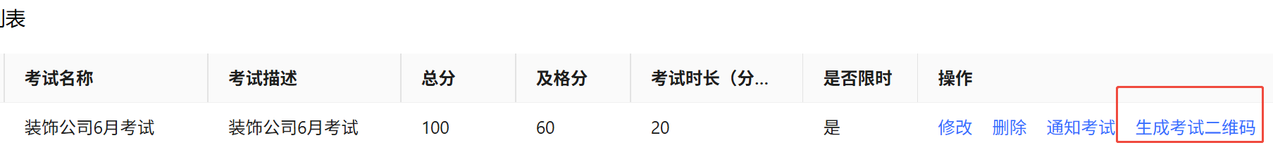 创建完后,在考试列表里可以看到新创建的考试