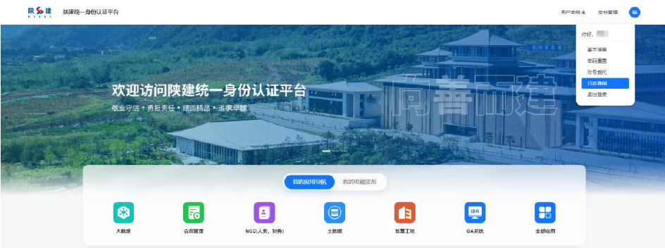2 、右上角个人中心处,点击“日志查询”处可看到个人账号的登录及操作账号情况,可查看委托账号的登录日志,便于审计追溯。