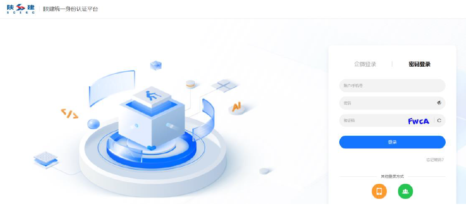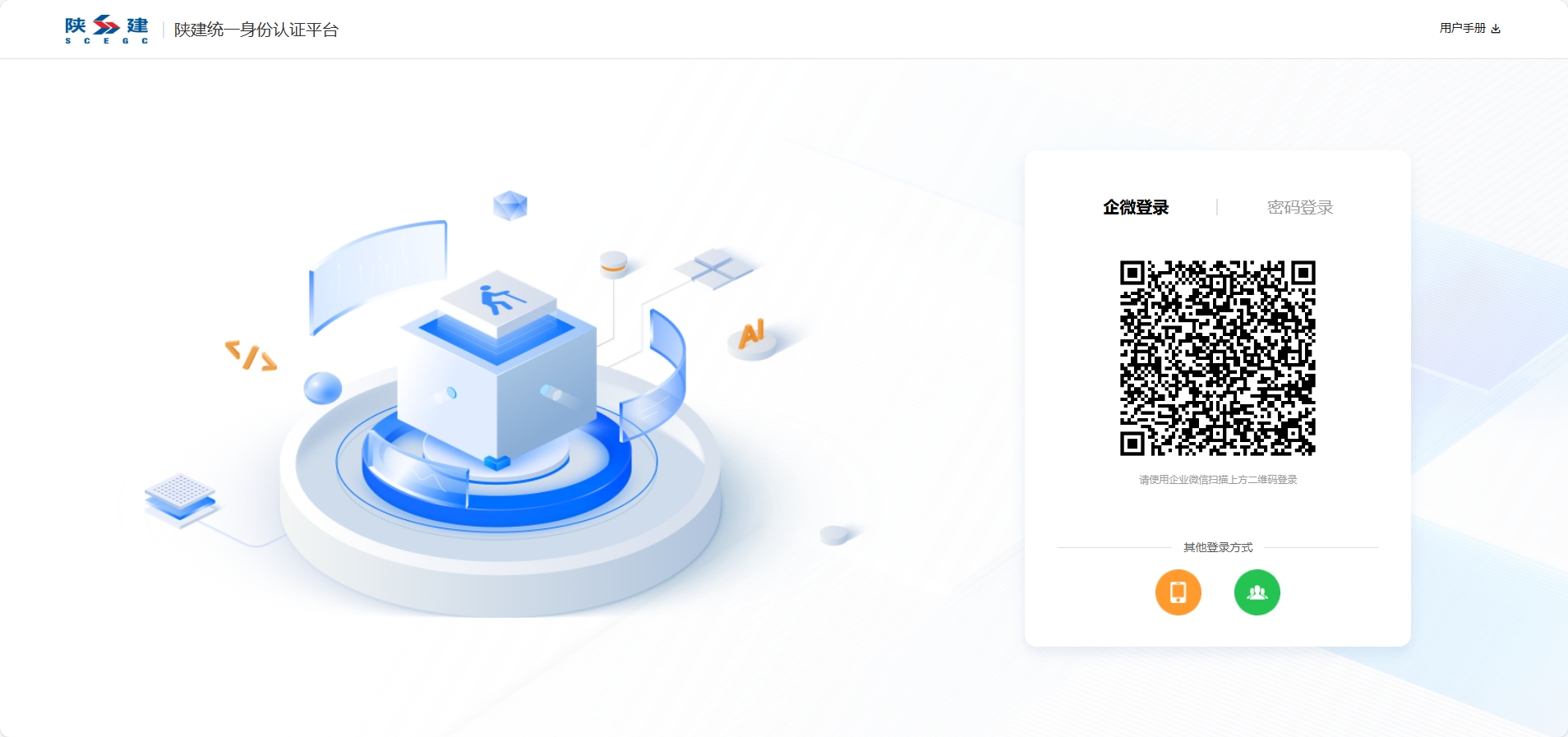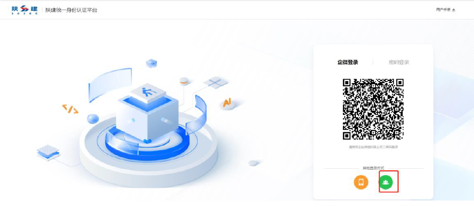 企业微信是目前陕建集团员工普遍安装的手机APP 软件,且后续会逐步推广成为大家移动办公的门户,因此我们默认使用企业微信作为扫二维码登录 统一身份认证平台 的登录方式。