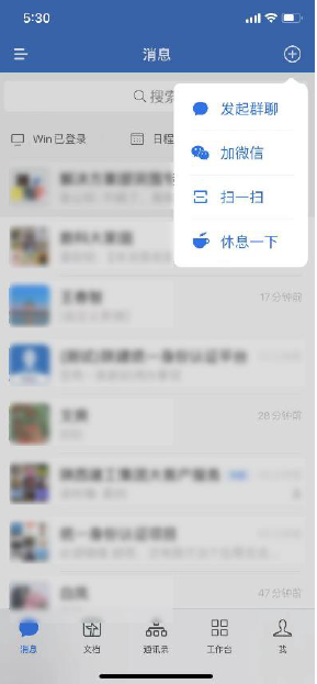 2、打开手机端企业微信,点击 扫一扫””“(如下图所示),扫浏浏览器里的二维码。
