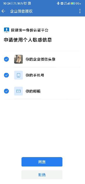 3、扫码后,点击 登录””(如下图所示)后,PC 浏览器就会完成登录进入 统一身份认证平台 。