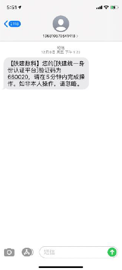 2 、 输入个人手机号,点击 发送短信””,然后将手机收到的短信验证码输入后,点击 登录 后完成登录。短信验证码如上图所示。
