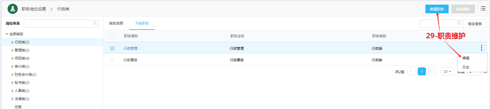 职务新建和编辑:29-职责维护;