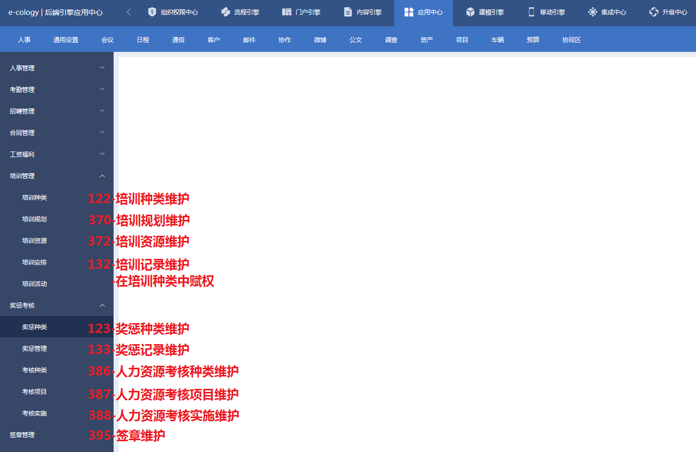 6)人事管理-培训管理、奖惩考核及签章管理相关权限