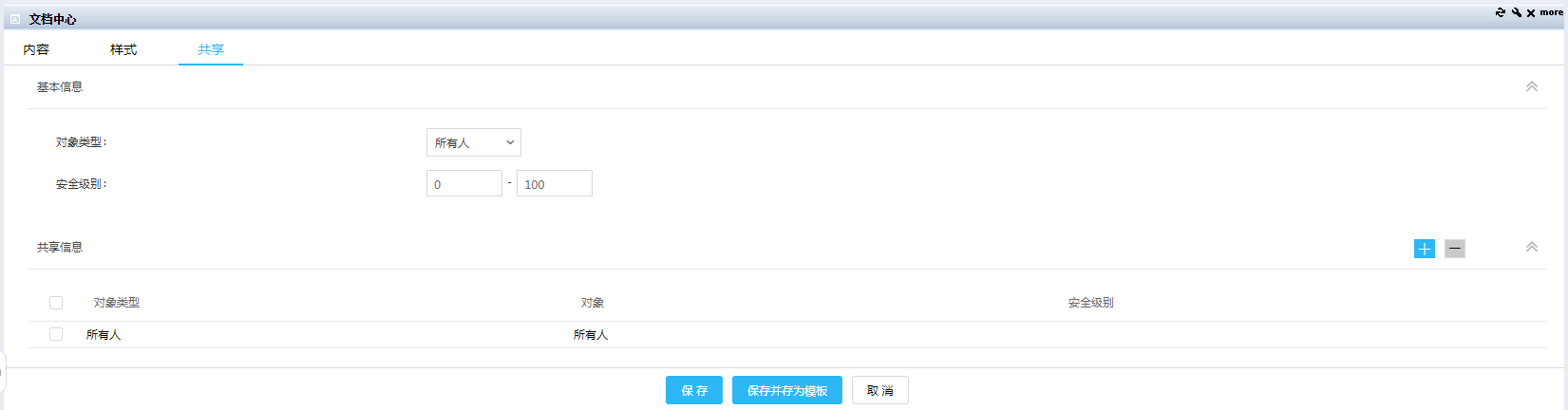 1)在元素设置页面有【共享】设置页面,这里设置元素在这个门户中的可查看范围,在范围之外的用户查看此门户的时候是看不到此元素的,共享添加方式与文档的共享方式一致