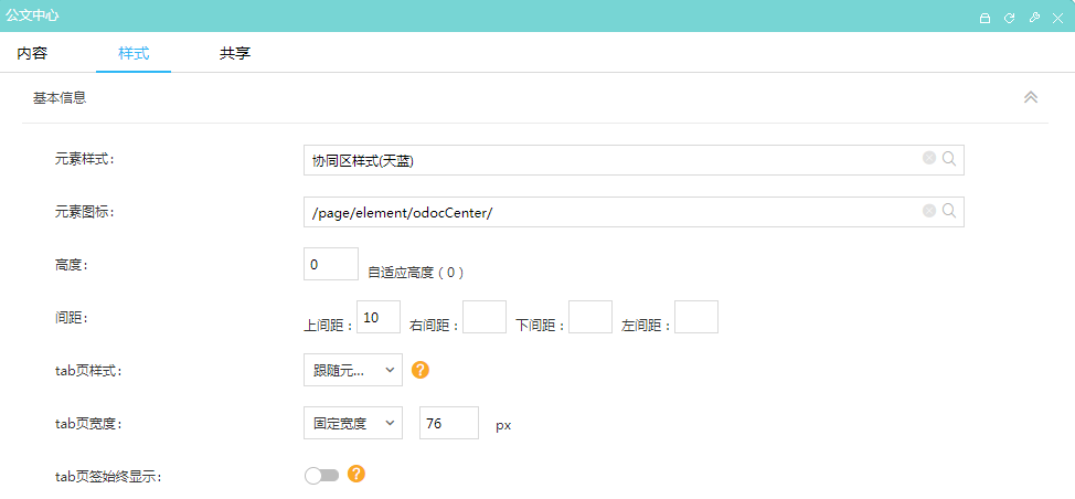 1)在元素设置页面中有【样式】设置页面,这里设置的是元素在门户中的显示样式