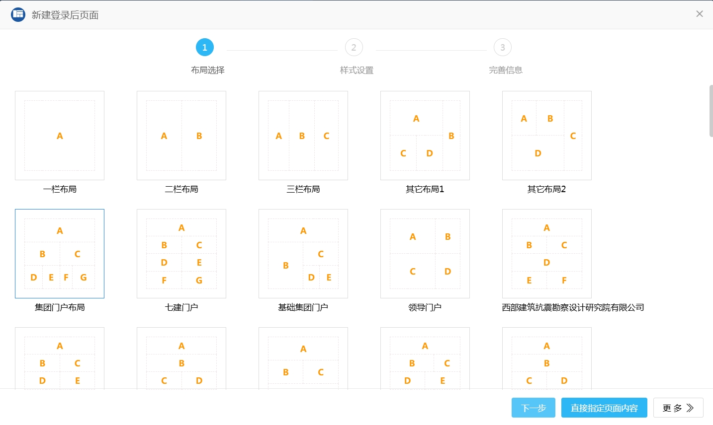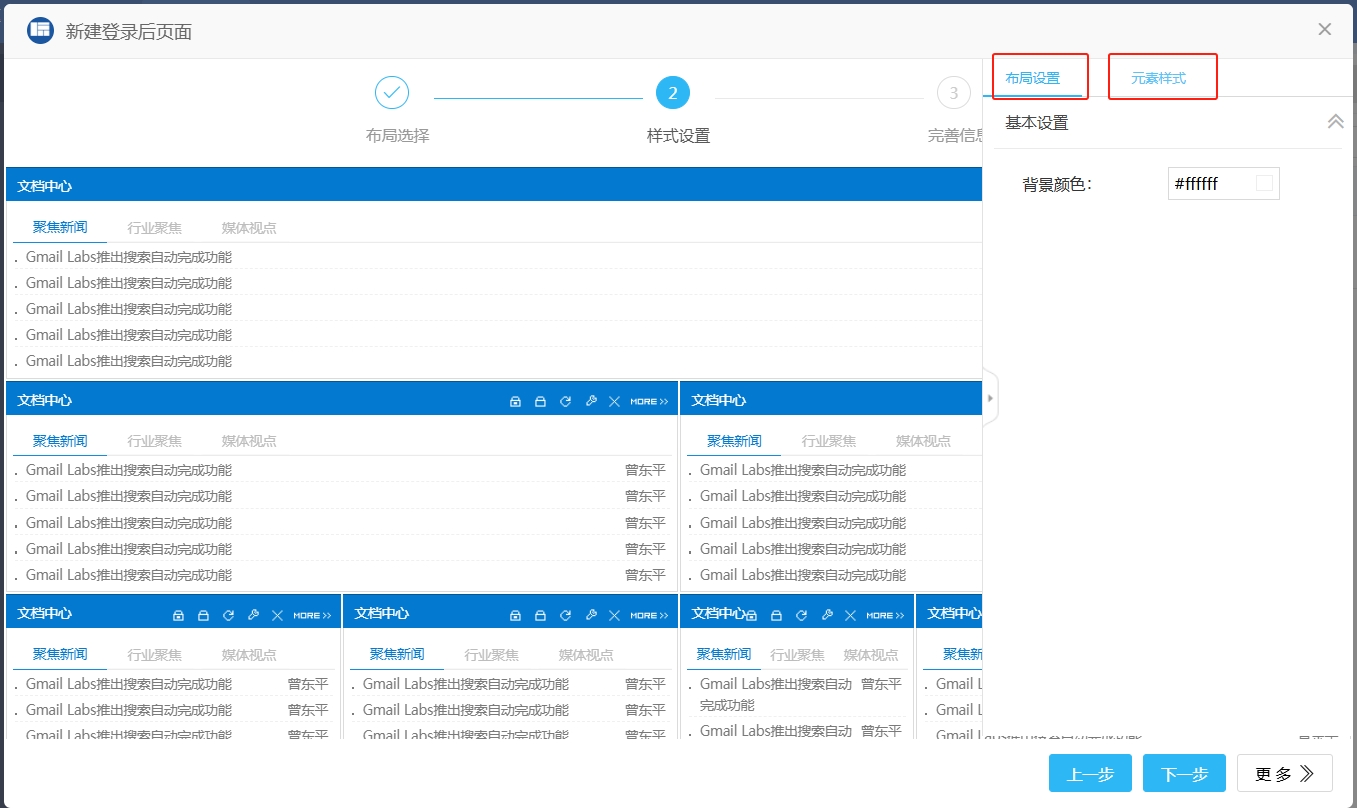 3)选择对应的门户样式,完成对应的布局设置及元素样式选择