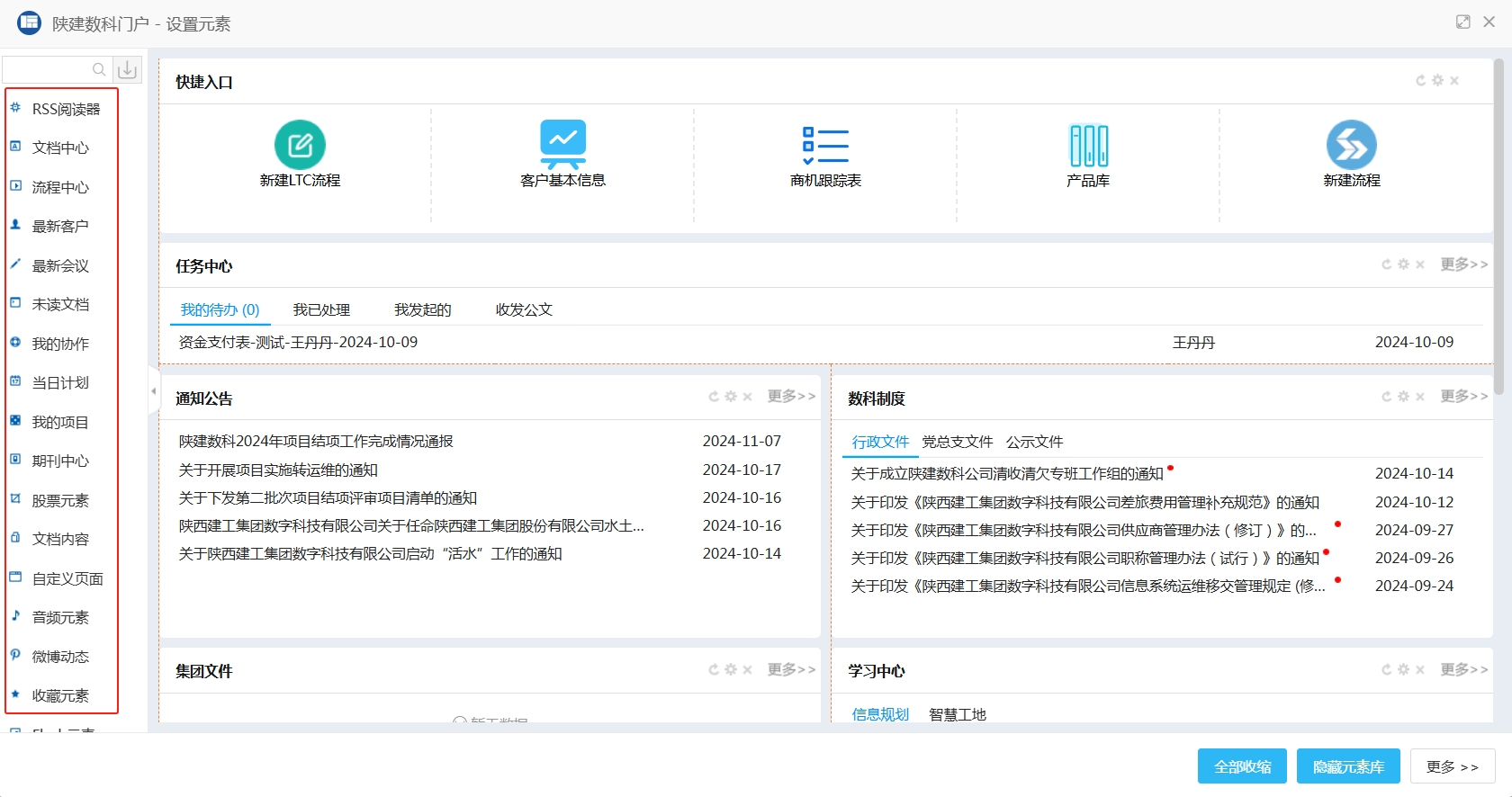 5)根据文档中“如何在门户中添加新的文件模块”的场景添加门户中对应的元素和文档中心