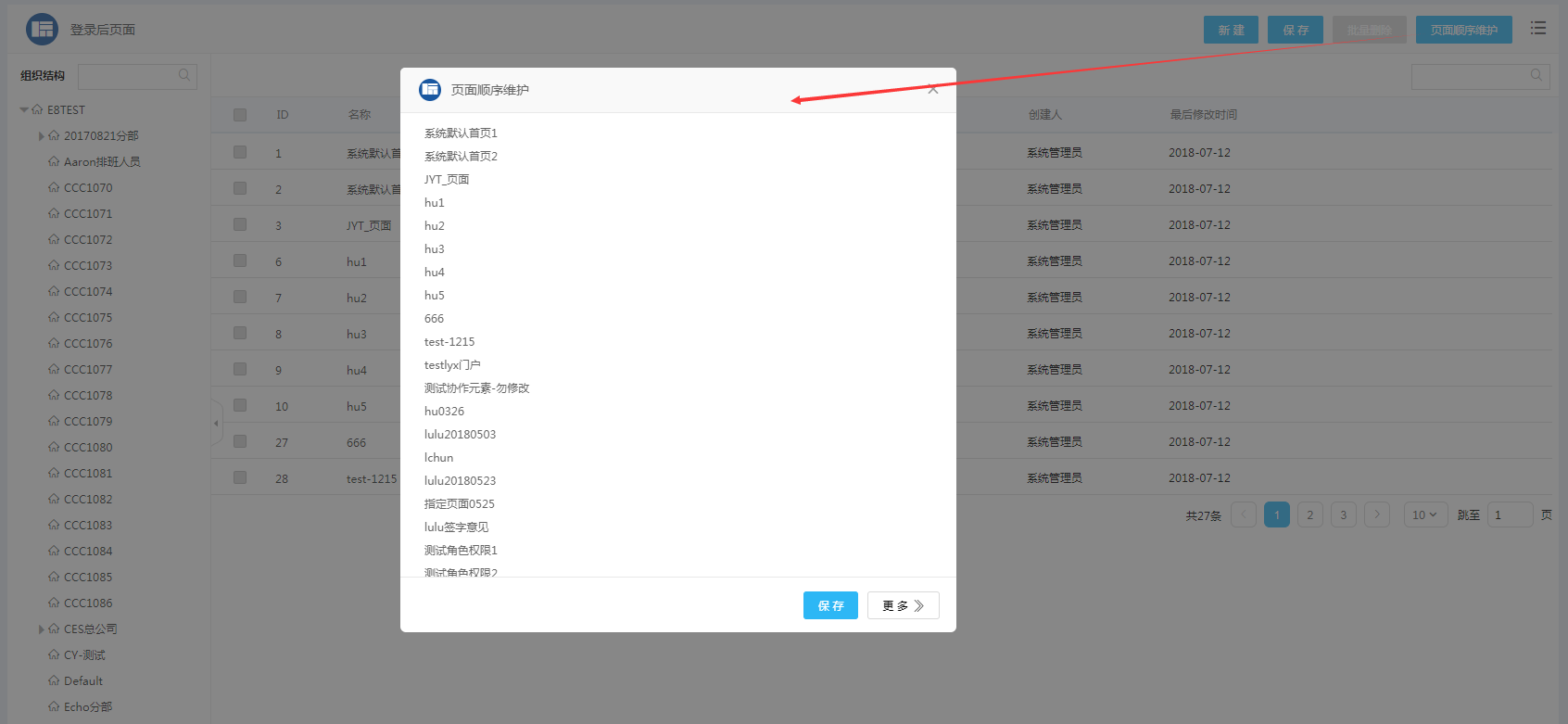 ④在门户列表页面上有【页面顺序维护】按钮,可以调整所有门户的显示顺序,点击按钮后显示如下
