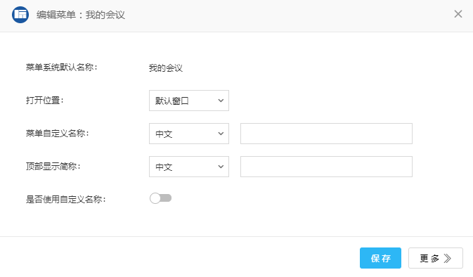 ①自定义菜单名称:设置自定义显示名,如果不设置默认使用系统菜单名称;