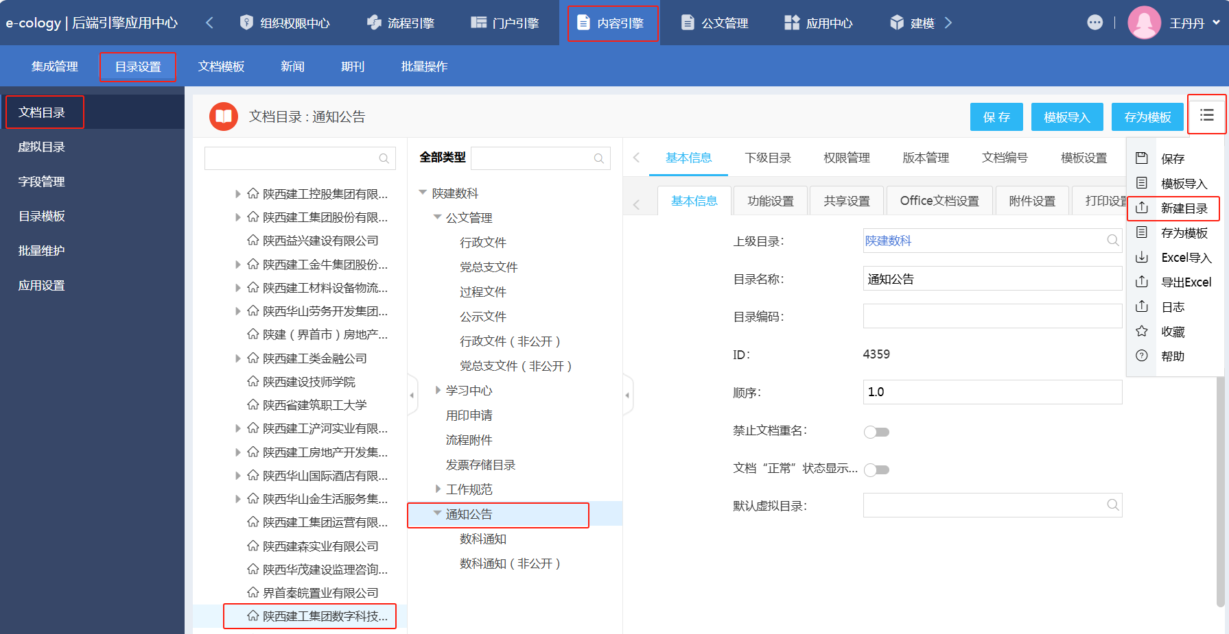 1)在后端的内容引擎→目录设置→文档目录中选择对应的单位,然后新建对应的目录