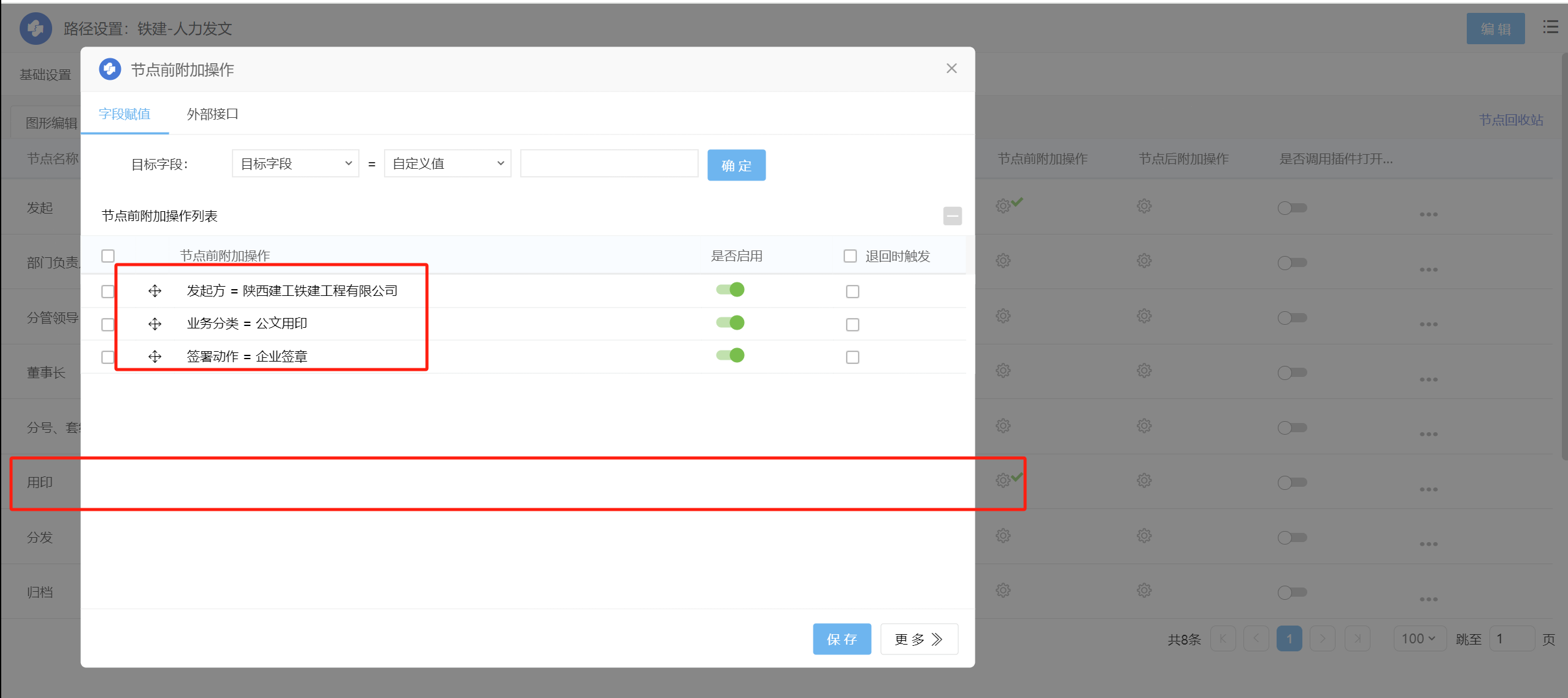 用印节点前需对上述字段进行节点前赋值,通常在用印节点前赋值。