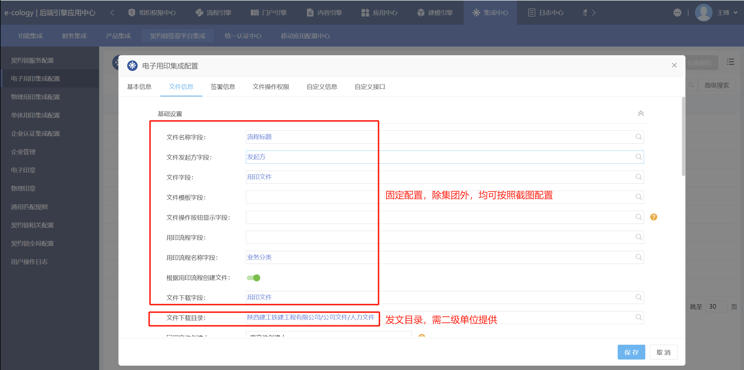 注:二级单位配置业务分类为公文用印,法人为股份集团的业务分类设置公文用印(陕西建工集团股份有限公司 )
