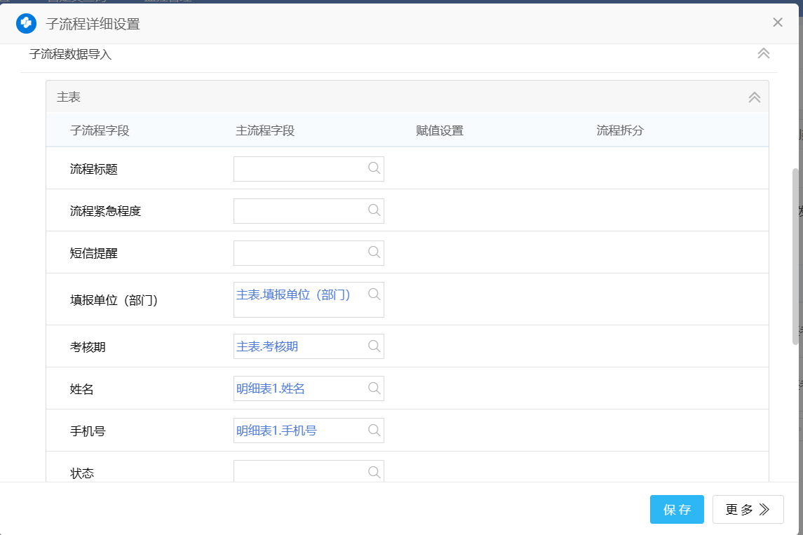 2)设置子触发的详细设置,设置子流程创建人,字段对应,设置触发条件
