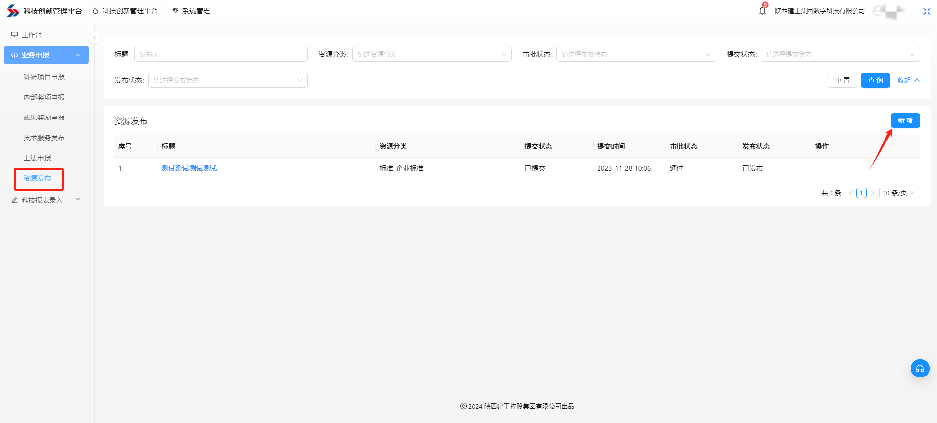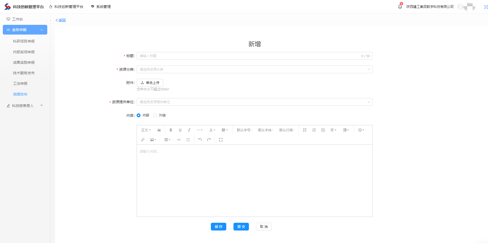 点击“新增”按钮,打开资源发布页,填写信息,所有带“*”为必填信息。信息填写完成点击“提交”即可。