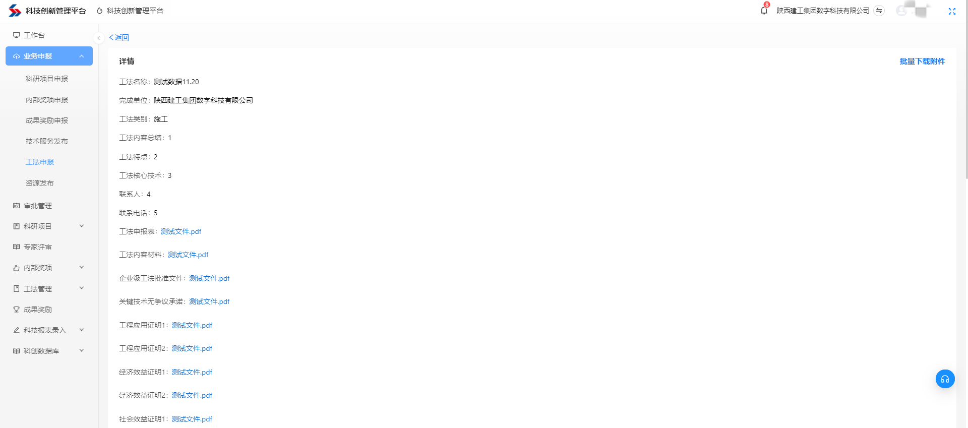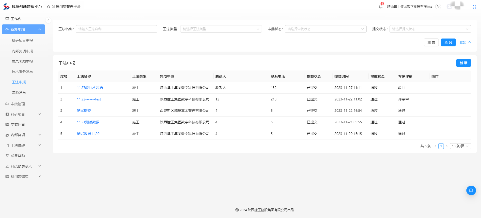 已提交的工法申报,可在列表中查看审批状态,待审批状态下支持“撤回”申报流程。