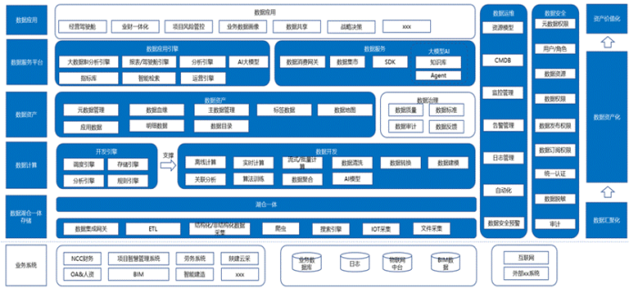 主要功能包括数据采集、数据湖仓一体存储、数据网关服务、数据计算、数据资产管理、数据应用等。通过识别和定义陕建集团项目管理等业务流程中的核心业务数据、集成标准,设计数据管理平台的整体架构,包括数据存储、处理流程、系统集成接口和安全机制,打通各个业务间数据流转壁垒。